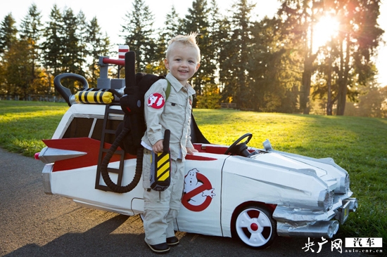 手推車經過改裝變成《捉鬼特工隊—Ecto-1行動》里的炫酷戰車。Cooper的父母Corry和Jeremy其實也是在完成自己兒時的夢想。他們努力回想80年代當自己還是孩子的時候想得到的東西,將他們送回自己的孩子,于是就有了這部源自經典電影的Ecto—小汽車。