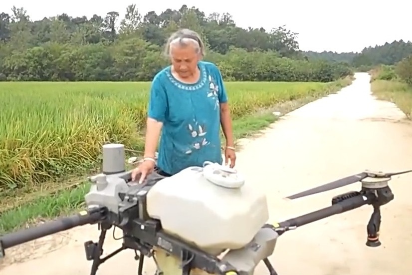 遇見你丨“80”后種田奶奶化身新農人 操作無人機滿田飛
