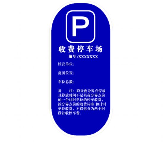 收費(fèi)停車場(chǎng)明碼標(biāo)價(jià)牌參考式樣正面