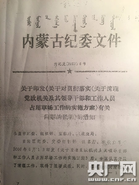 2006年內蒙古自治區區紀委文件(央廣網記者 白宇 攝)