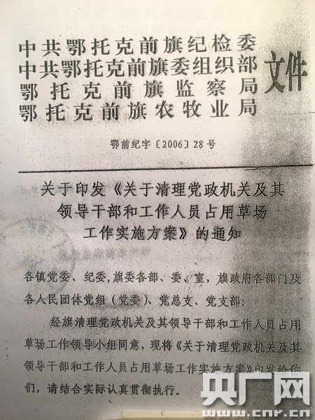 鄂托克前旗紀委等部門聯合發文(央廣網記者 白宇 攝)