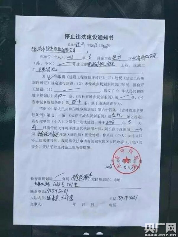 長春市住建委一位負責人告訴記者,項目的確沒有規劃手續,被叫停后施工就停止了。他強調,這個污水處理廠,對環境沒有破壞,“現在是不是還要開工,暫時沒有這個想法,因為這個季節不可以,另外得遵守規劃局的要求,規劃沒定,不可能開工建設,北海污水處理廠是地下式的,上面全恢復成綠地,就是占用的這部分未來還要恢復,因為施工考慮對公園的影響,未來包括植樹、綠化。”