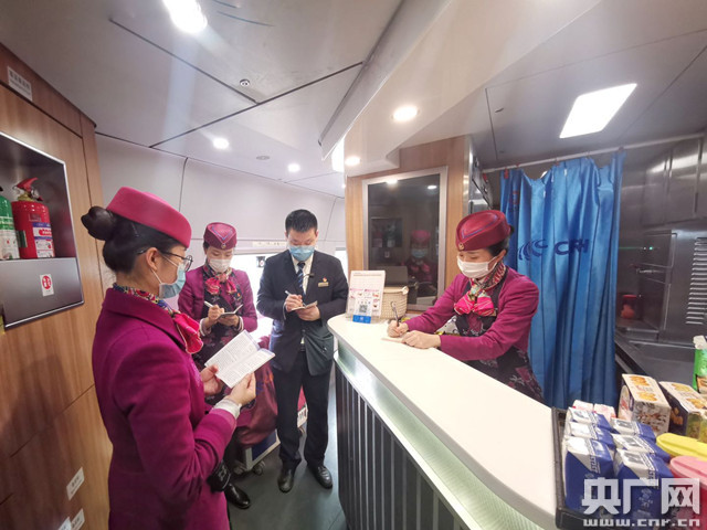 “各車廂加強(qiáng)疫情防控宣傳,化解旅客疑慮。同時(shí)做好車廂內(nèi)重點(diǎn)服務(wù),及時(shí)為旅客提供幫助!泵揭贿呇惨暎贿呁ㄟ^(guò)對(duì)講機(jī)進(jìn)行提示。班組職工也按照責(zé)任車廂分工,逐車做好當(dāng)前防疫形式宣傳,引導(dǎo)旅客樹立正確的思想意識(shí),同時(shí),為旅客現(xiàn)場(chǎng)演示正確佩戴口罩、清潔手部衛(wèi)生的方法;而餐吧員做好沿途廣播的播報(bào)和旅客餐食的供應(yīng),各崗位團(tuán)結(jié)協(xié)作,密切配合,車廂內(nèi)一片溫馨祥和的氛圍。