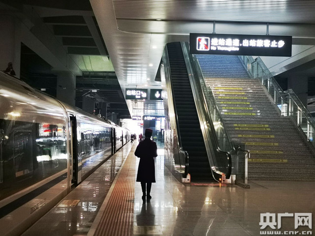 列車乘務(wù)員等待放客(央廣網(wǎng)發(fā) 通訊員唐娟 攝)