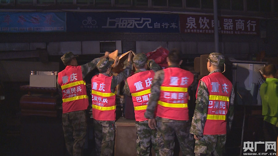 重慶市巴南區魚洞街道辦事處武裝部長朱啟明稱,目前水位還在上漲,通過一整天的工作,武警官兵、民兵及志愿者已經轉移物資達到80多噸,轉移居民1000多人,轉移車輛2000多輛。通過我們齊心協力,一定能夠戰勝這次過境洪峰。