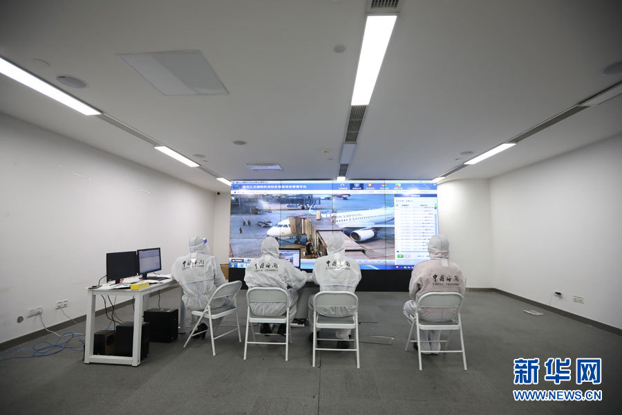 重慶江北機場海關新冠肺炎疫情衛生檢疫現場指揮中心。新華網發(施漢瓊 攝)
