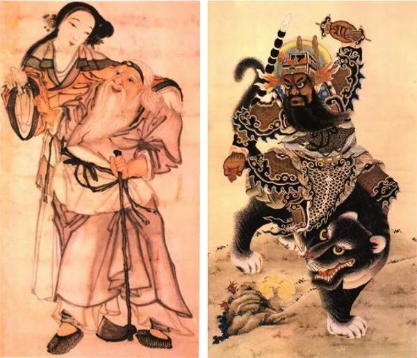 圖為綿竹老年畫,《麻姑獻壽》(左)、《趙公鎮宅》(右)