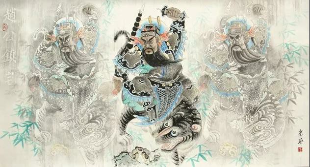 圖為《趙公鎮宅》新年畫,胡光葵繪制