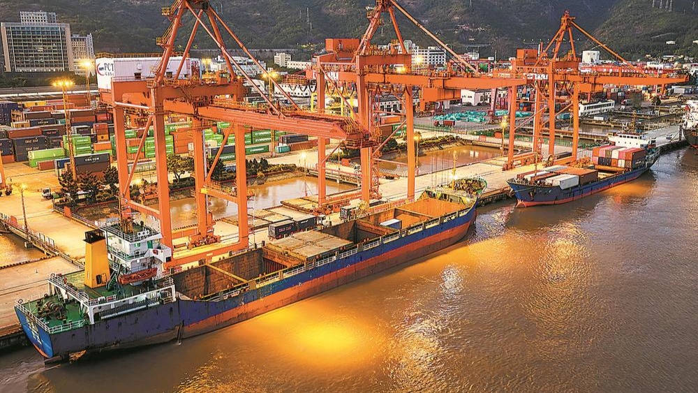 福州青州集裝箱碼頭燈火通明 貨輪有序作業