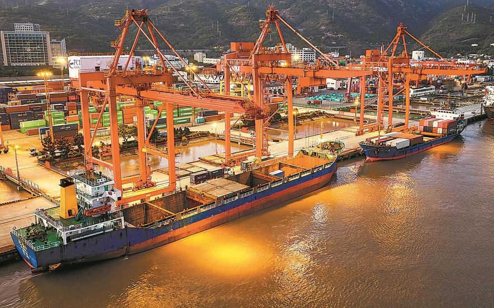 近日,福州青州集裝箱碼頭燈火通明,貨輪在泊位上有序裝卸作業(yè)。據(jù)福州海關統(tǒng)計,今年前10個月,我省對外貿(mào)易進出口總值1.56萬億元。海關總署12月8日發(fā)布的數(shù)據(jù)顯示,11月,我國貨物貿(mào)易進出口總值3.9萬億元,同比增長4.1%,從2月起連續(xù)10個月保持增長。(王旺旺 攝)