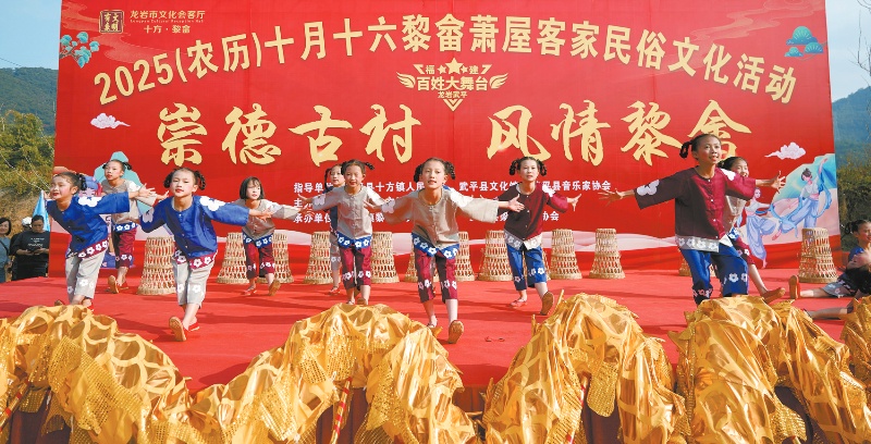 農歷十月十六,武平縣十方鎮黎畬村舉辦了以“崇德古村,風情黎畬”為主題的客家民俗文化節。當地民眾在冬日的暖陽下歡聚在一起,學習祖訓家規,品嘗客家美食,欣賞民間文藝演出。圖為小朋友們表演童謠《十月十六黎畬蕭屋》。(龍媒體記者 賴珊盛 通訊員 蘭秀連 黃玉蘭 攝)