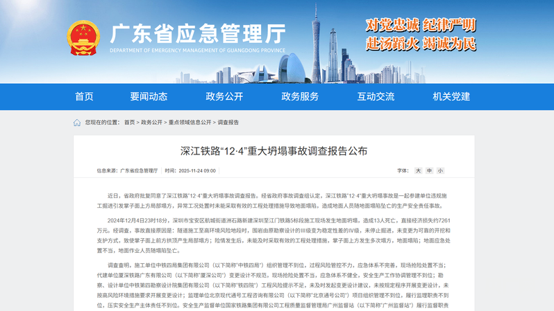 深江鐵路“12·4”重大坍塌事故調查報告公布