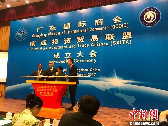 中新網(wǎng)廣州3月15日電 15日,由廣東省貿(mào)促會(huì)、廣東國(guó)際商會(huì)倡議發(fā)起的廣東國(guó)際商會(huì)南亞投資貿(mào)易聯(lián)盟在廣州正式成立。印度、巴基斯坦、斯里蘭卡駐廣州總領(lǐng)事館官員以及廣東省企業(yè)代表出席了成立儀式。