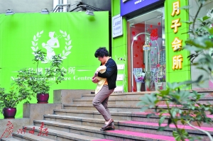 越秀區人民路一家月子會所,坐完月子的客人收拾行李回家。