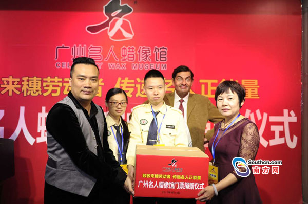 本次活動以“致敬來穗勞動者,傳遞名人正能量”為主題,邀請來穗務工人員及家屬免費參觀廣州名人蠟像館,讓他們感受廣州城市的包容、務實和溫暖。門票捐贈儀式邀請包括環(huán)衛(wèi)工人、郵遞員、出租屋管理員、民辦教師等在內(nèi)的來穗務工人員代表參加,并一起參觀了蠟像館。他們中有10多年在廣州辛勤奉獻的城市美容師,有為深化平安有序作出貢獻的輔警和出租屋管理員,也有為隨遷子女教育事業(yè)付出心血的民辦學校教師。