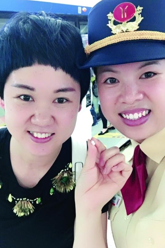 失主(左)找回鉆石耳釘。通訊員供圖
