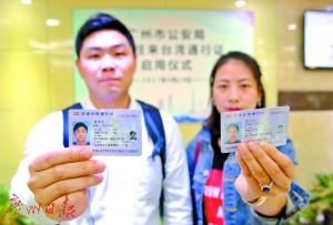 廣州日報訊 昨日(4月24日),廣州市公安局舉行電子往來臺灣通行證啟用儀式,啟用當天已有兩名市民順利領取了電子往來臺灣通行證。據悉,電子往來臺灣通行證啟用后,仍然有效的現行本式往來臺灣通行證和貼紙簽注可以繼續使用,也可以提前換發電子往來臺灣通行證。