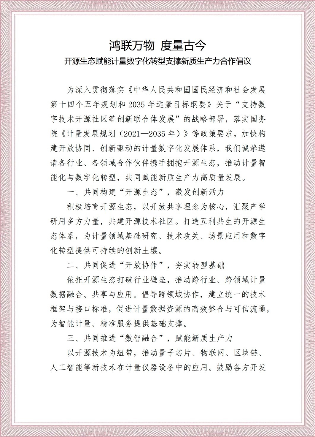附:《鴻聯萬物 度量古今——開源生態賦能計量數字化轉型支撐新質生產力合作倡議》