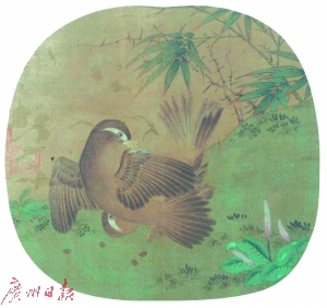在求偶季節,如果一只雌畫眉周圍有兩只以上的競爭者,那么,一場惡戰將不可避免。雄畫眉在打斗過程中,不僅有如“拼命三郎”,且啄、抓、插、滾、爬等武藝俱全,因而被譽為“英雄鳥”。對于畫眉善于打斗這一點,古人也屢有記載。如大約成書于清道光年間的《續客窗閑話·斗鵪》說:“禽之善斗者,有雞、有畫眉、有鵪鶉……南人好斗畫眉,北人好斗鵪鶉……富室貴胄,遇有俊物,不惜重價購之。”而古代畫家早就仔細觀察過畫眉打斗的場面,并用畫筆記錄下來。據傳為宋末元初畫家錢選所繪的名畫《畫眉清筱》,就是描繪兩只畫眉鳥打斗正酣的場面。畫中兩只畫眉鳥在野外草竹荊枝間打斗墜地,居上的一只看似已經壓倒對手,但下方的一只卻抓住它的鳥啄奮力拼搏,大有反制逆轉之勢。畫面凝固在兩鳥施展渾身解數纏斗的瞬間,具有極強的視覺沖擊力。