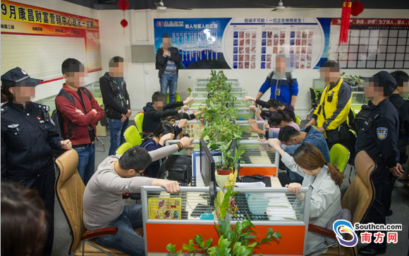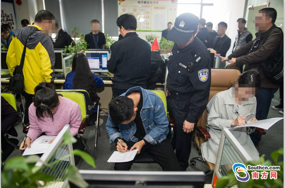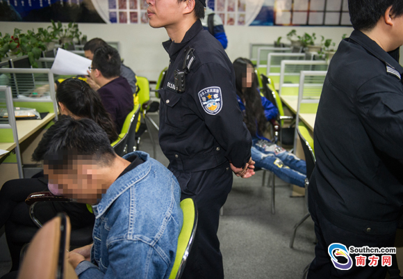 收網行動,警方破獲一網絡詐騙案,圖為抓捕行動現場。