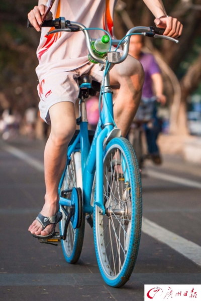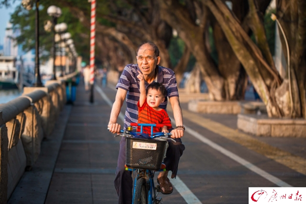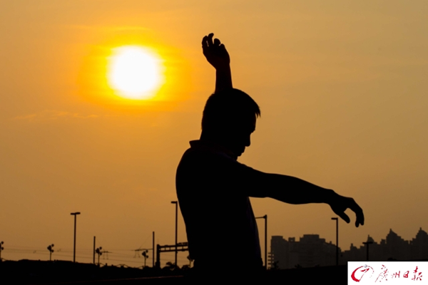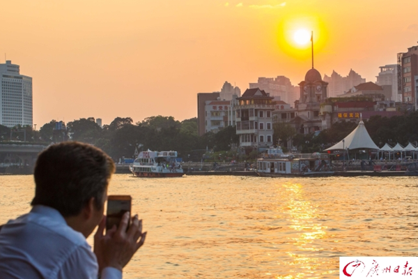 據大洋網報道,2017年4月17日,廣州市艷陽高照,最高氣溫高達33℃,一日入夏。濱江路,穿著短袖短褲的街坊們在黃昏的斜陽下感受初夏的滋味。廣報全媒體記者陳憂子攝