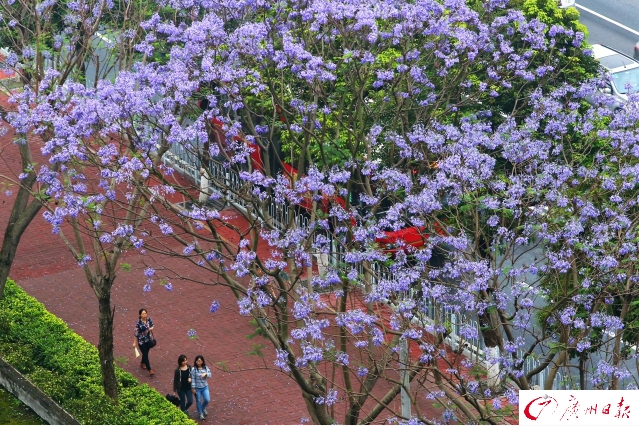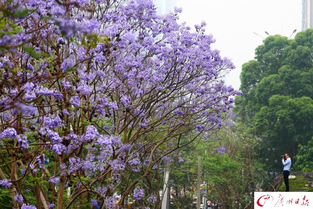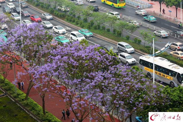 記者從天河區農業和園林局獲悉,市民還可在車陂路、花城大道等路段欣賞到藍花楹,去年,該局在兩條路段新種植了800余棵藍花楹。目前,已有幾棵在花城大道開花,待到花期市民便能欣賞到滿樹繁花。