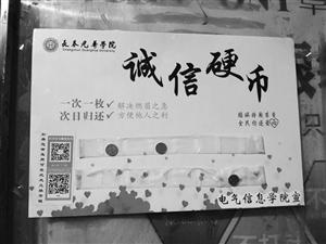 14日上午,長春晚報記者來到了武漢路附近的長春光華學院,在路邊一處361路公交站點找到了“誠信硬幣”的宣傳信息板。信息板上寫有“一次一枚,解決燃眉之急;次日歸還,方便他人之利”,并配有微信和支付寶的二維碼,想兌換零錢的市民可以掃碼操作。信息板的落款為長春光華學院電氣信息學院。