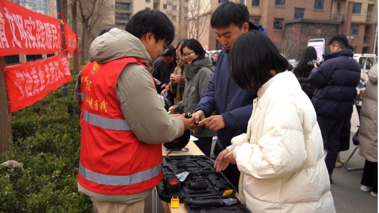 社區工作者展示工具箱(曲陽縣融媒體中心供圖)