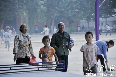 采訪中留意到,這里的學生要么由校車接送,要么由白發蒼蒼的爺爺奶奶接送,很少見到孩子的父母。
