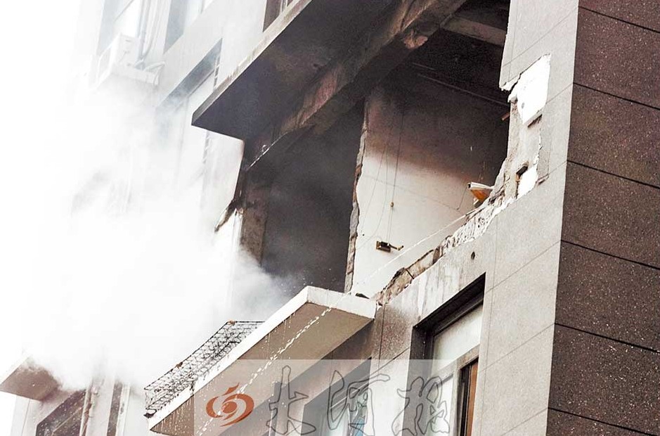事發居民樓對面50米外的快捷酒店,窗戶大部分破損。