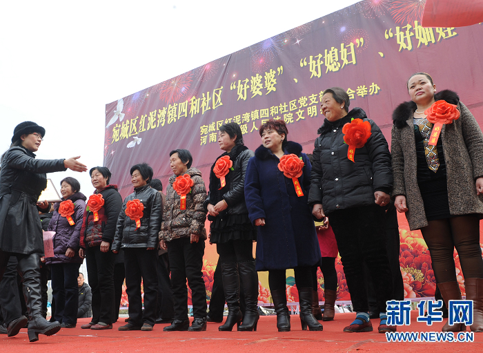 央廣網河南分網消息 據新華網河南頻道報道:當日,河南省南陽市宛城區紅泥灣鎮四和社區搭臺唱戲,對評選出的30名“好婆婆”“好媳婦”和“好妯娌”進行頒獎表彰,弘揚家和萬事興的傳統美德。