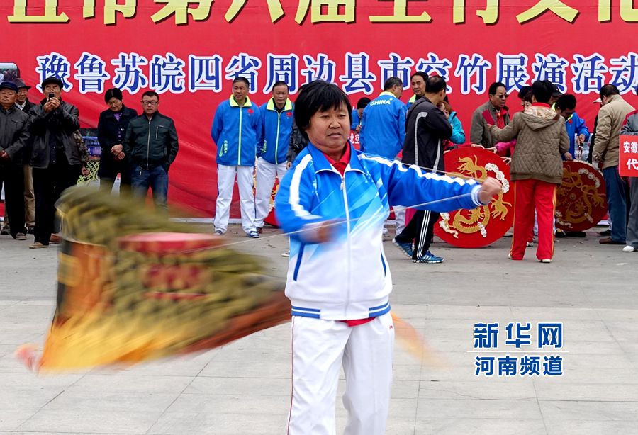 央廣網河南分網消息 11月1日,河南省商丘市第六屆空竹文化節暨蘇魯豫皖四省周邊縣市空竹展演活動,在夏邑縣栗城廣場開幕,吸引了十幾個縣市的空竹代表隊,眾多空竹愛好者參加。苗育才攝