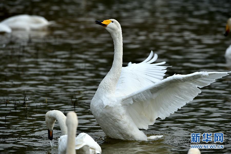 央廣網(wǎng)河南分網(wǎng)消息 連日來,不斷有野生大天鵝飛臨位于山西南部的平陸黃河濕地棲息,準(zhǔn)備越冬。占地6000多公頃的平陸黃河濕氣候溫和、食物豐富,非常適宜白天鵝越冬。每年秋末冬初,有“白精靈”之稱的野生大天鵝就會(huì)成群結(jié)隊(duì)從西伯利亞地區(qū)來到這里。隨著濕地生態(tài)環(huán)境不斷改善,到此越冬的白天鵝數(shù)量逐年增加。新華社記者詹彥攝