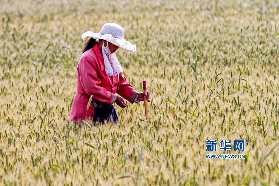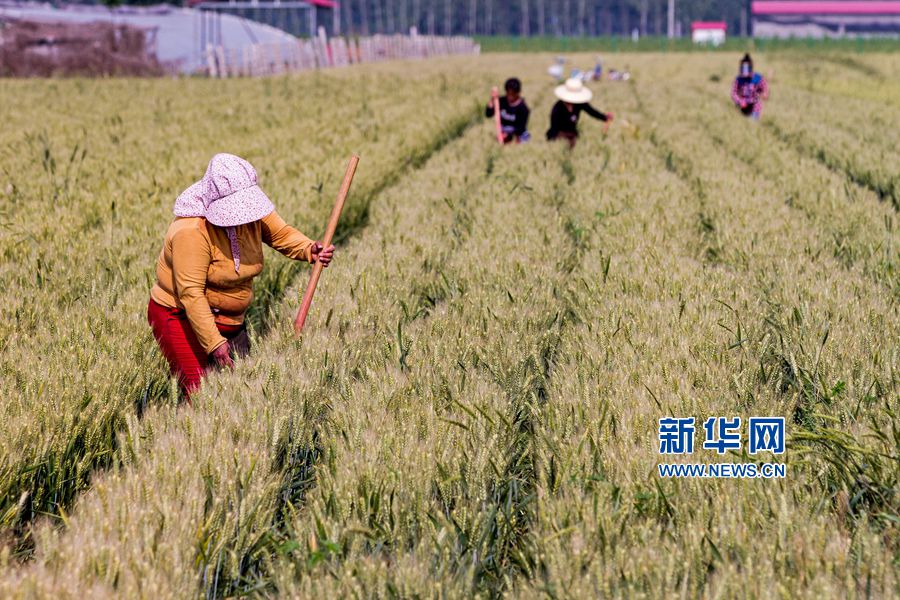 2016年5月22日,河南省安陽縣農民在即將成熟的麥田里套種玉米。目前,豫北地區距小麥收獲還有半個月時間。在在即將成熟的麥田里套種玉米、花生等秋季作物,可以有效增加莊稼的生長期,提高產量,增加收入。 新華網發(王子瑞 攝)