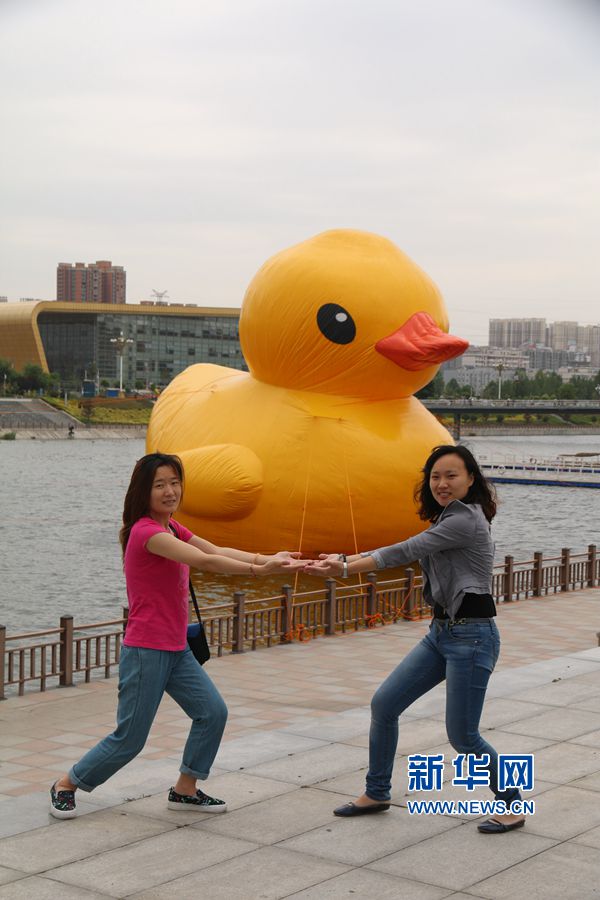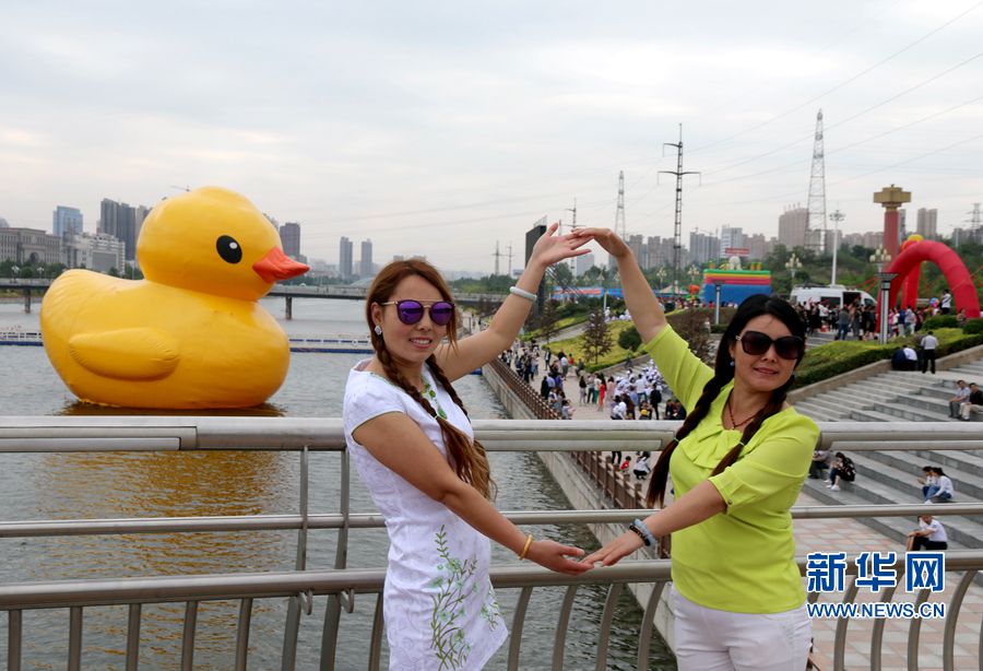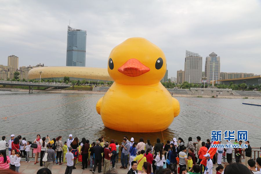 5月25日,風靡世界的大黃鴨驚艷亮相美麗天鵝城三門峽,為第二十二屆黃河文化旅游節暨投資貿易洽談會助興增彩。大黃鴨由荷蘭藝術家霍夫曼設計創作并風靡全世界,是現代化城市文明的標志。從2007年開始,大黃鴨就開始游歷世界,每次大黃鴨都會引來當地粉絲的瘋狂追捧,給人們帶來驚喜、歡笑和對童年的美好回憶。新華網發(鞏衛東 攝)