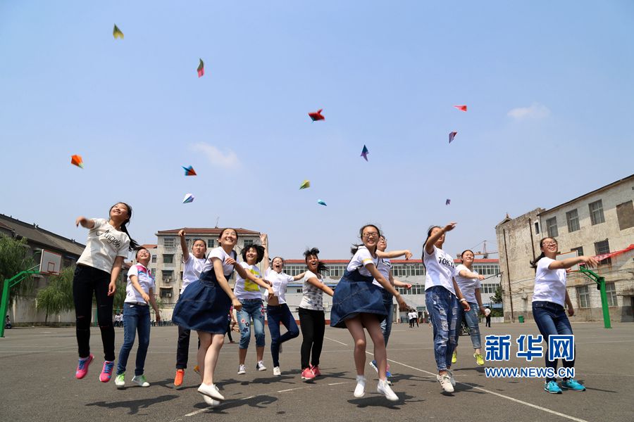 5月28日,河南省溫縣實(shí)驗(yàn)中學(xué)的學(xué)生們拍下創(chuàng)意畢業(yè)照,用自己特有的方式,告別初中生活,向母校告別。 新華網(wǎng)發(fā)(徐宏星 攝)