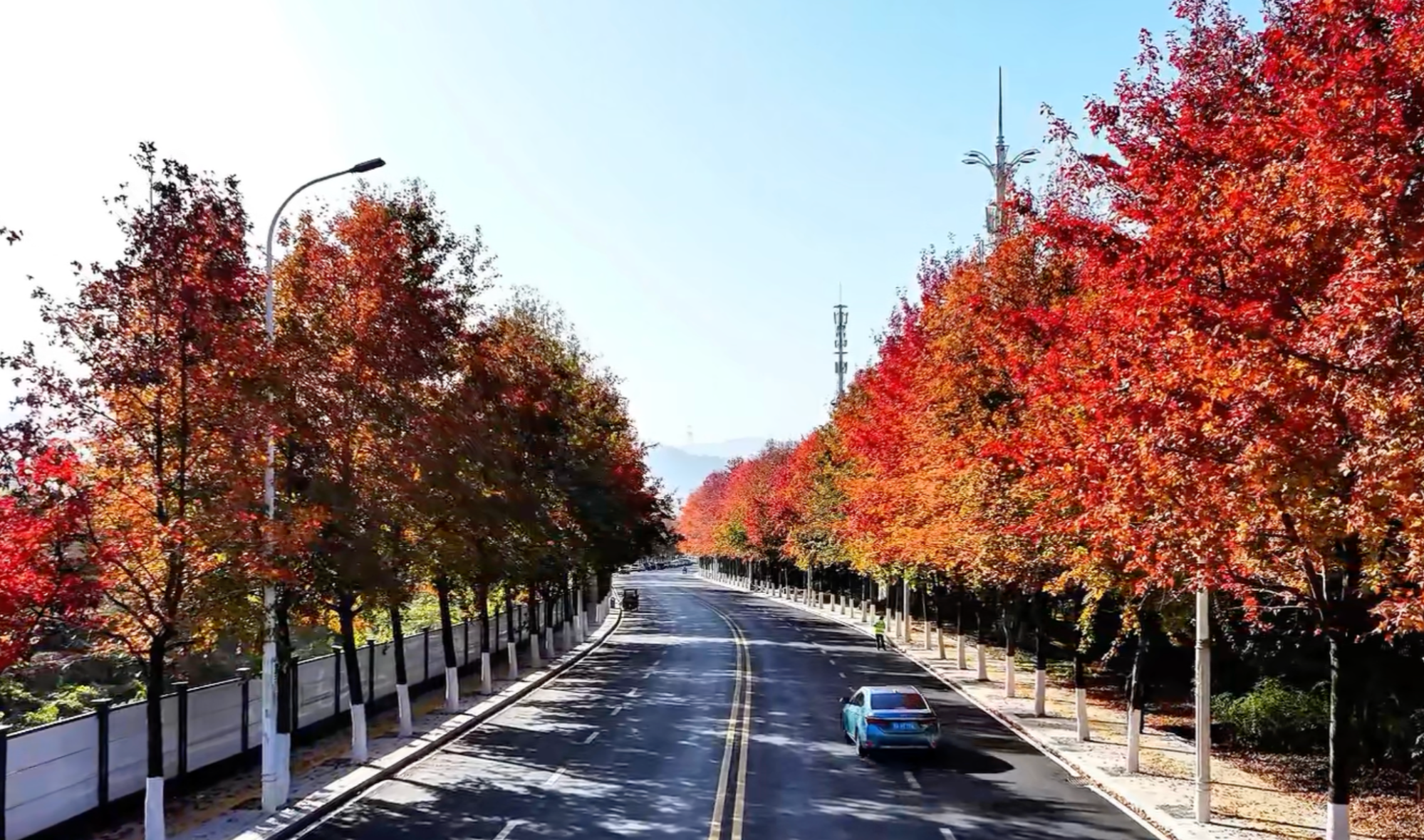 連日來,湖北咸寧咸安區南昌路社區孟養浩東路的秋日限定景觀迎來最佳觀賞期。道路兩側樹木層林盡染,紅、黃、綠三色枝葉交相輝映,宛如一條延伸向遠方的天然“畫廊”。