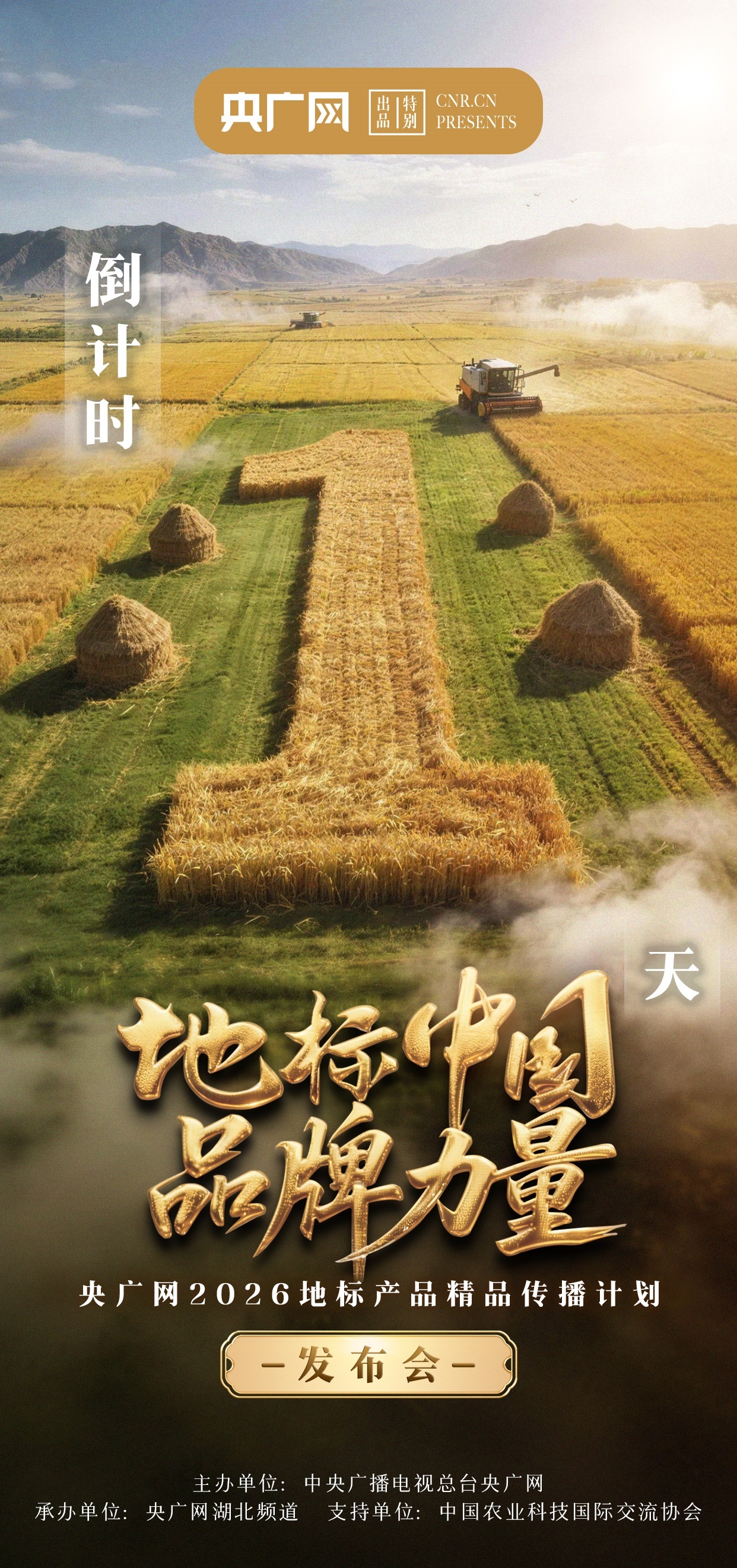 央媒引領,使命擔當。示范性地標產品集中亮相,原產地經驗啟示一次講透。12月26日,“地標中國·品牌力量”央廣網2026地標產品精品傳播計劃發布會將盛大啟幕。倒計時1天。全國優秀地標品牌精英齊聚湖北武漢,見證地標品牌精品傳播之路的正式開啟。