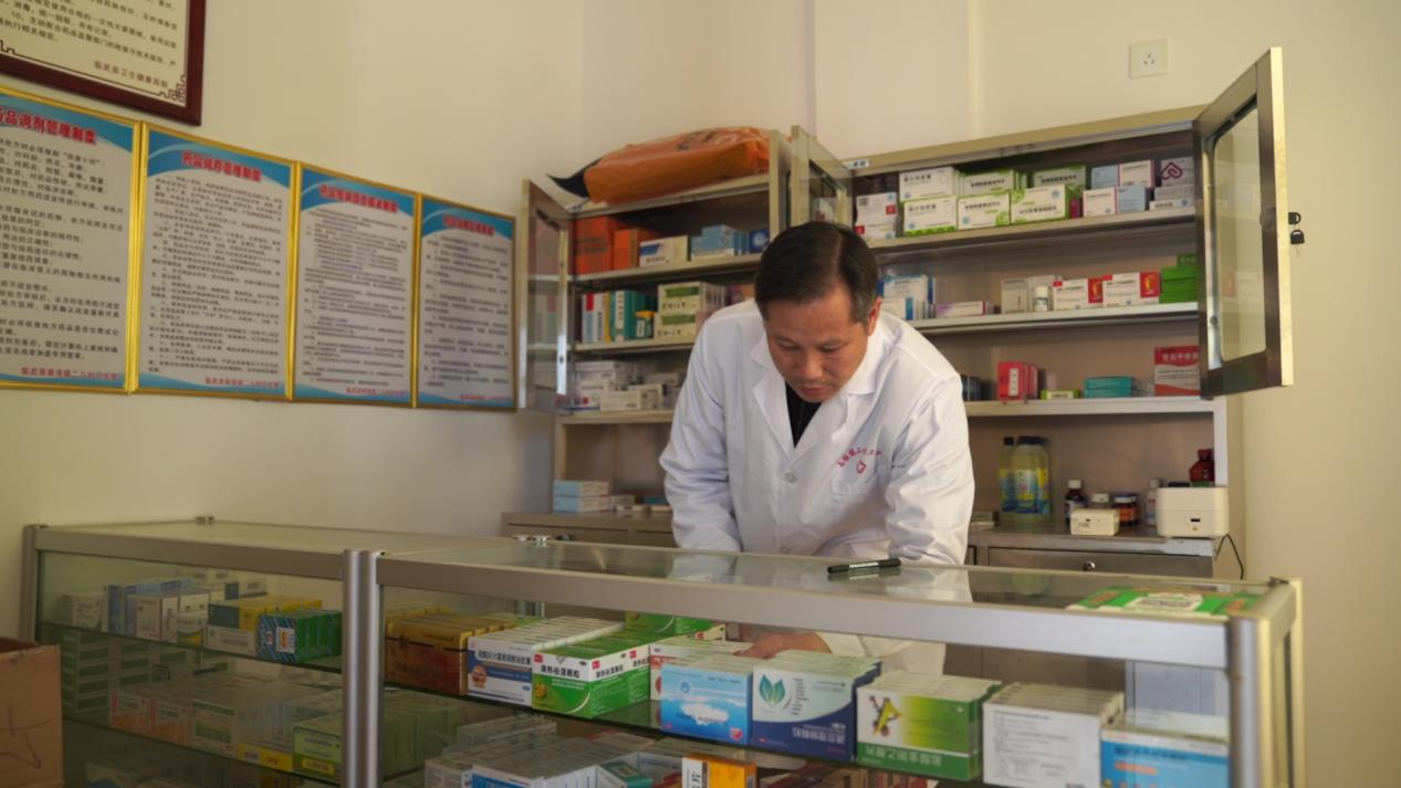 鄧海波在衛生室拿取此次要帶去慢性疾病患者家中的藥品(徐楊政 攝)