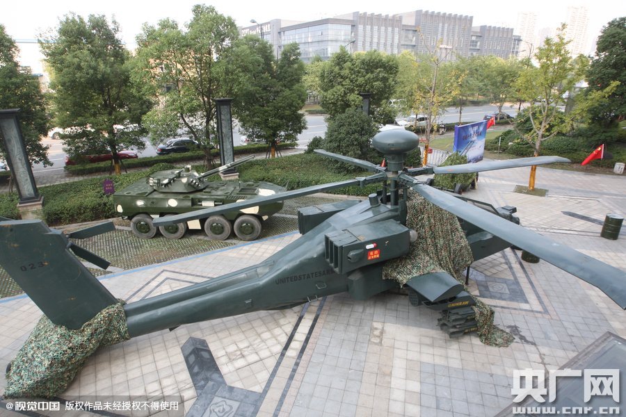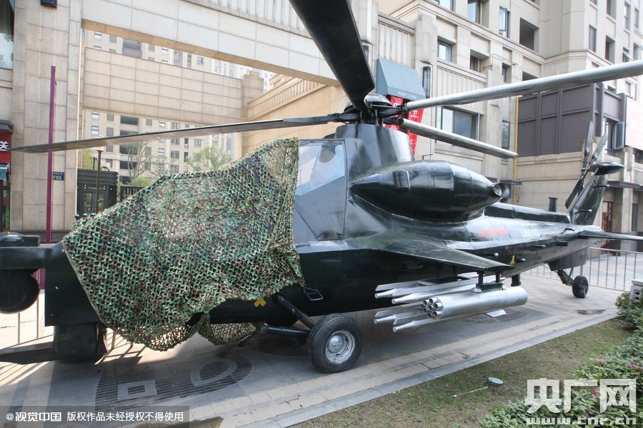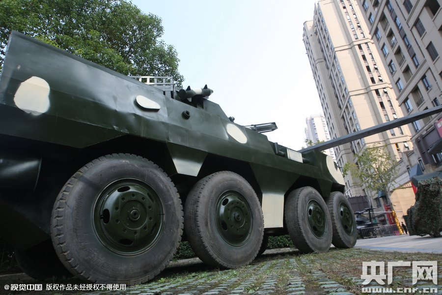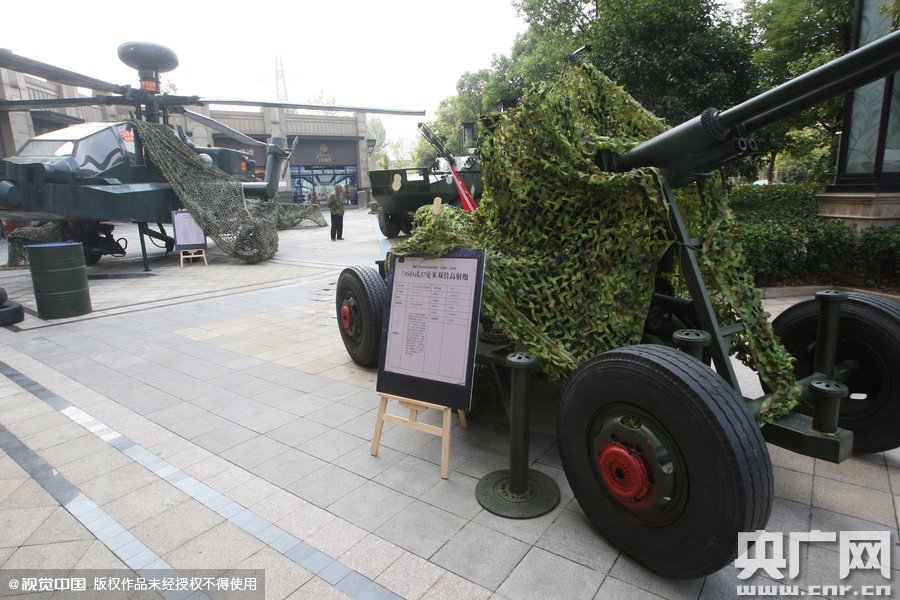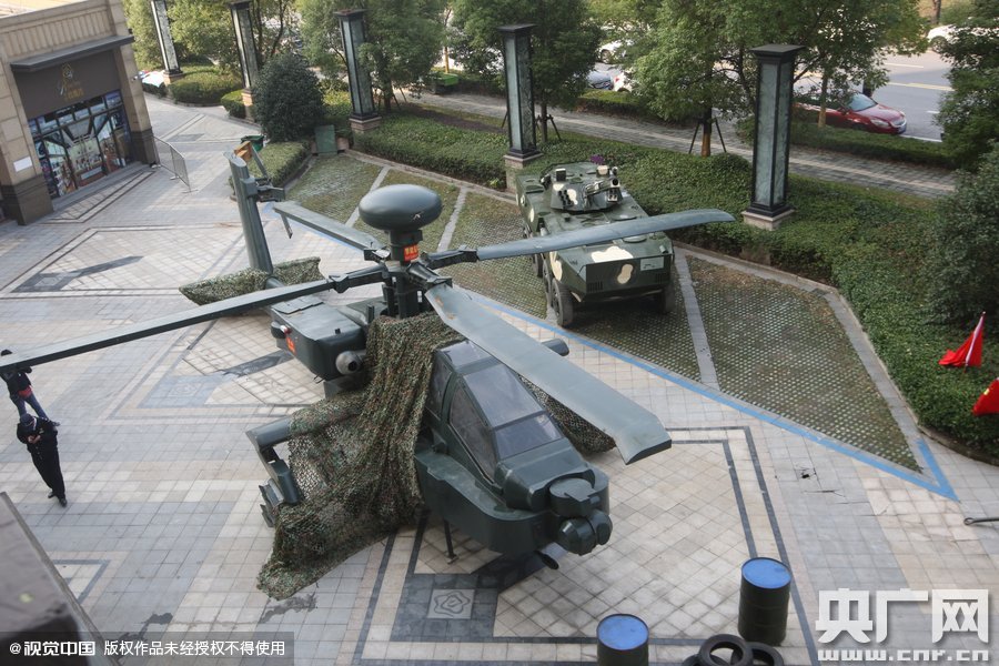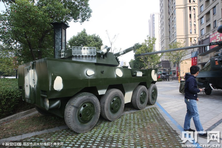 2015年11月02日,浙江杭州,杭州一家房產商為了沖量,用上了“飛機大炮坦克”。該開發商在樓盤外放置了三架仿真模型飛機,一架艦載機,兩架直升級,另有兩門“大炮”、兩輛“裝甲車”、一輛“坦克”。這些大家伙因為外形逼真,吸引了市民的眼球。9月至10月一向是一年成交旺季,自進入金九銀十以來,杭州各城區成交量有一定程度的上升,但因為庫存較大,銷售前景并不樂觀。