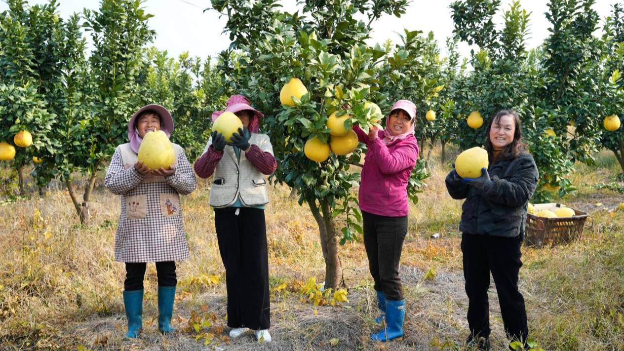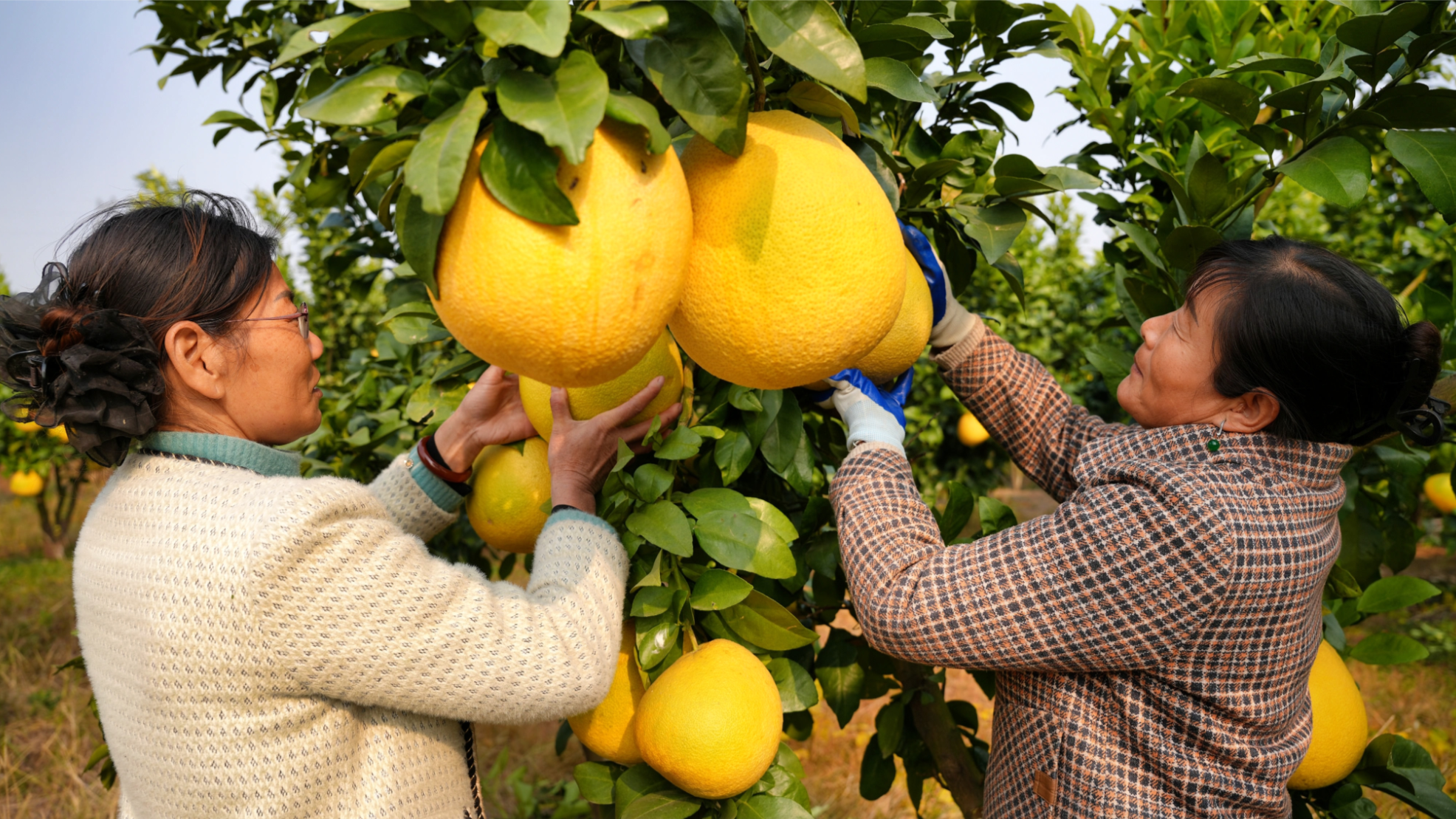 冬日早晨,薄霧輕籠,位于江西九江市彭澤縣馬當鎮茅灣村的馬家柚種植基地,一顆顆金黃的馬家柚掛滿枝頭。