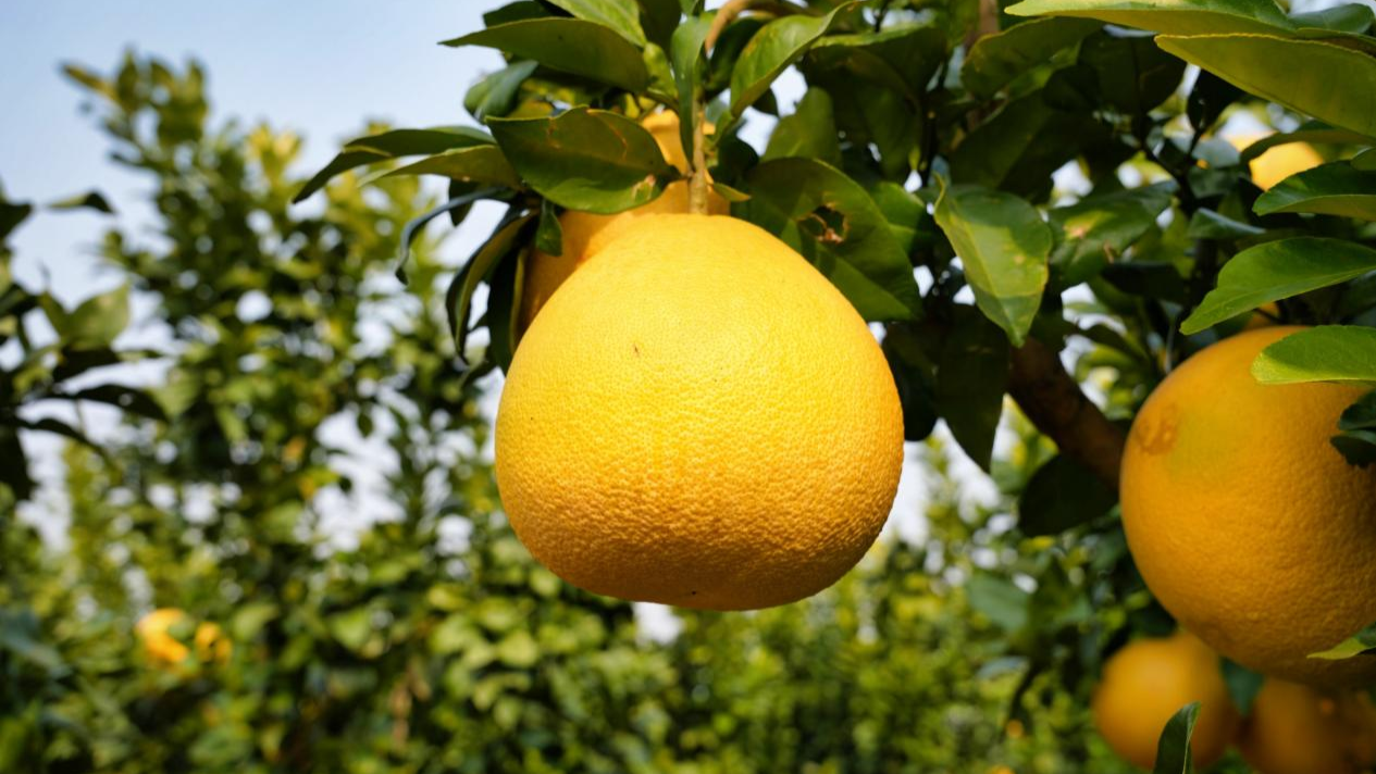 基地內,散發著誘人的香氣,果農們忙碌地穿梭在柚林間,忙著采摘送往車間分揀打包。