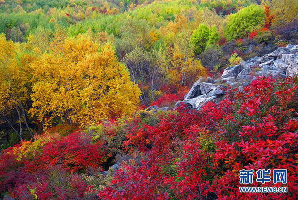 八達嶺國家森林公園紅葉嶺景區有四大特點:艷、早、野、近。該景區面積近千畝,共計紅葉樹(黃櫨)5萬多株,毗鄰殘長城,位于中華第一鐵路和詹天佑紀念銅像南側山嶺上。