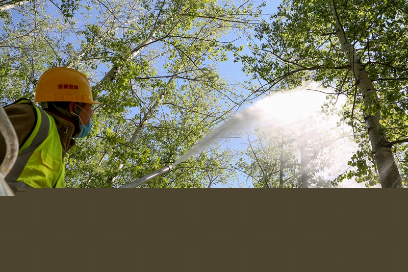 園林綠化工人正在使用高壓水槍治理?xiàng)盍酰ㄑ霃V網(wǎng)發(fā) 北京市園林綠化局供圖)