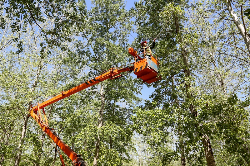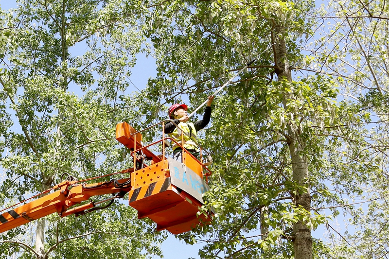 園林工人正在對(duì)高大柳樹多余的枝條進(jìn)行修剪(北京市園林綠化局供圖)