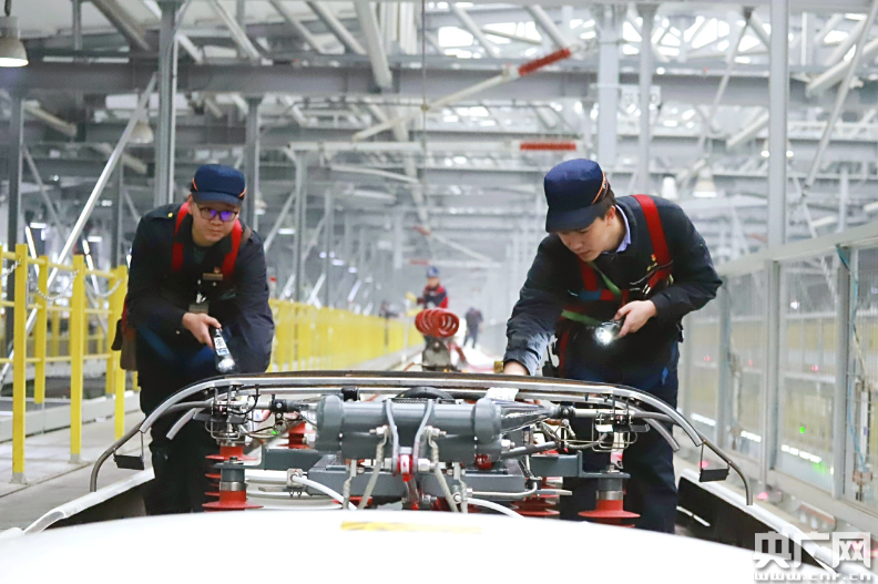 央廣網重慶12月14日消息(記者趙聰聰 通訊員周兵)12月13日,為備戰成貴高鐵開通,中國鐵路成都局集團有限公司成都動車段運用檢修庫一片繁忙景象,動車組機械師正在各司其職給動車組做“全面體檢”。