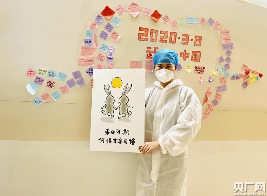 唐棠副護士長捧著一張寫有“來日可期,何懼車遙馬慢”的漫畫說到:“勝利就在眼前,我們一定要不麻痹、不厭戰(zhàn)、不松勁,慎終如始,全力救治患者!”