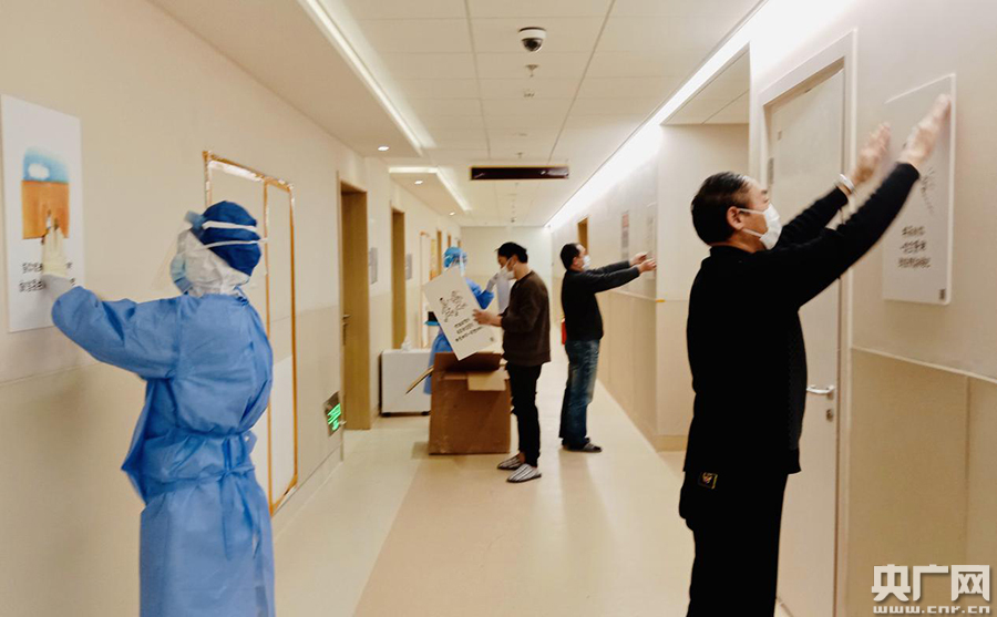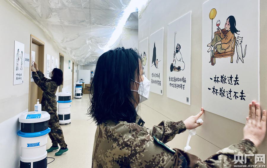 醫(yī)護人員在工作區(qū)精心布置治愈系漫畫(央廣網發(fā) 通訊員曾理 攝)