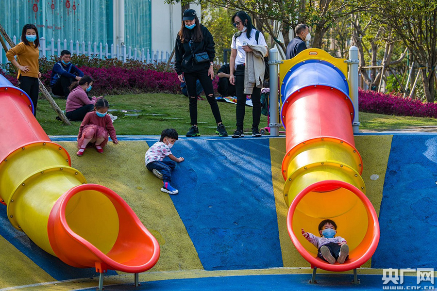 小朋友在公園內玩滑梯(央廣網發 規劃自然資源局供圖)