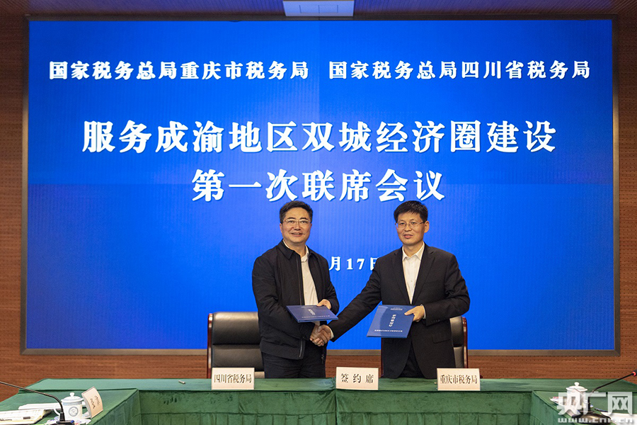 國家稅務總局重慶市稅務局和國家稅務總局四川省稅務局簽訂服務成渝地區雙城經濟圈建設合作備忘錄(央廣網發 張霄羽 攝)